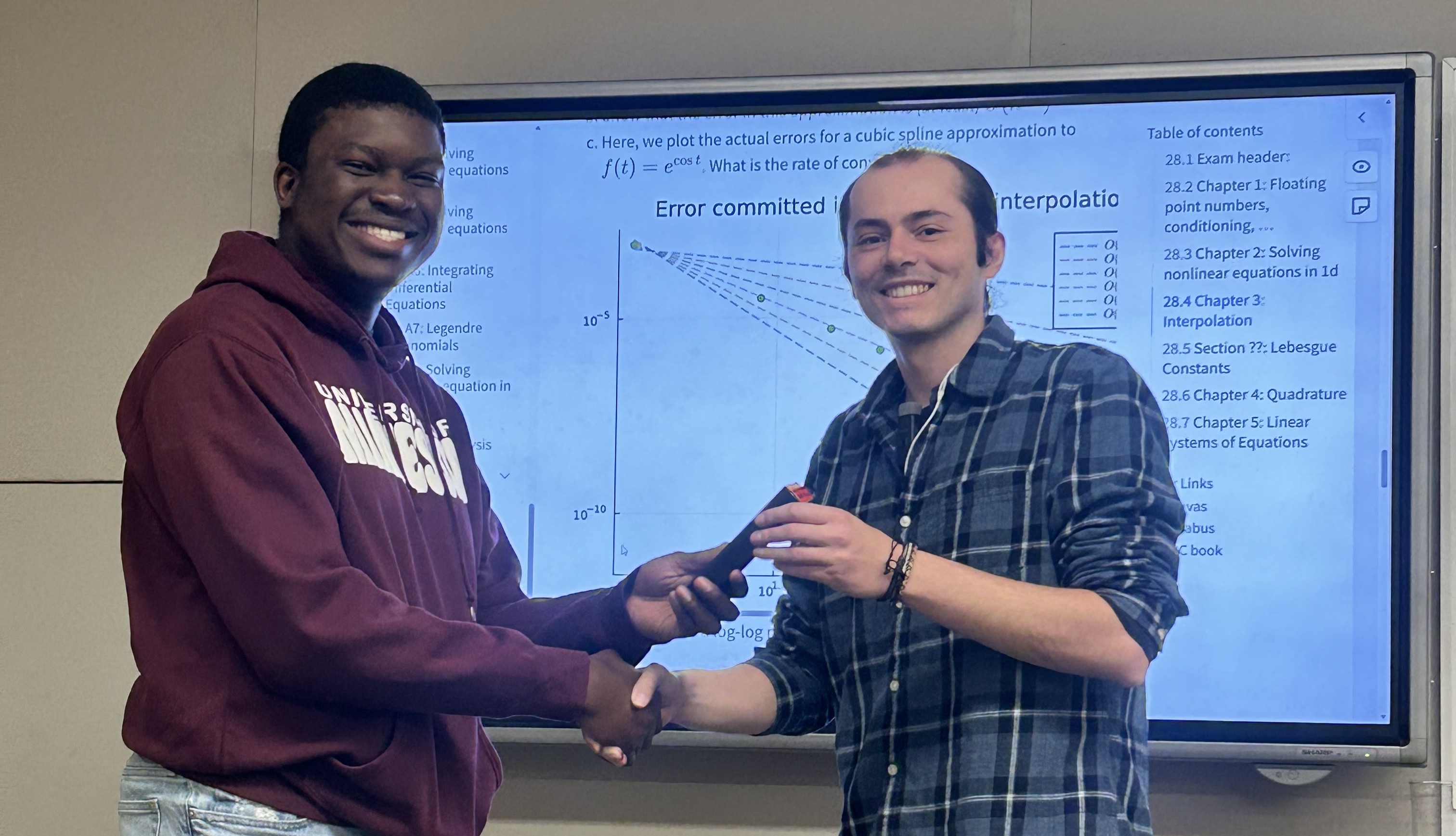 Congratulations to Efosa Owie for winning the best presentation prize for his talk on “Cubic Spline Interpolation”