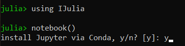 using IJuliaand thennotebook()to download Jupyter notebooks (confirm by enteringy)