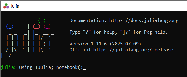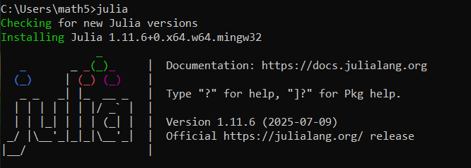 juliain the command line to install and run the most recent version of Julia - after a short wait, you will see this